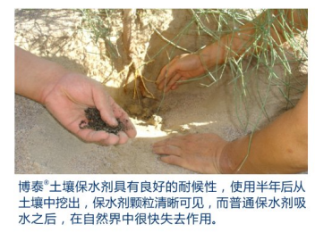 100%降解、綠色環(huán)保博泰"SAP不含有害物質(zhì),在土壤中降解后形成含氮、磷、鉀物質(zhì)作為營(yíng)養(yǎng)完全被作物吸收,無(wú)殘留。產(chǎn)品pH值約為6.0~8.0,不含鈉鹽,還可防止土地鹽堿化。