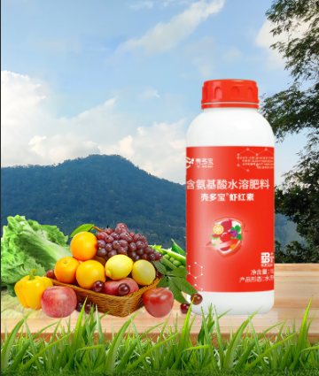 蝦紅素是采用先進(jìn)的萃取工藝,從海洋蝦蟹中提取出苯丙氨酸、天冬氨酸等氨基酸,和蝦青素、甲殼寡聚糖等多種生物活性物質(zhì),與銅、鐵、錳、鋅、硼等微量元素配制而成的新型生物刺激劑,不含激素,可促進(jìn)轉(zhuǎn)色、提高果實(shí)品質(zhì)。