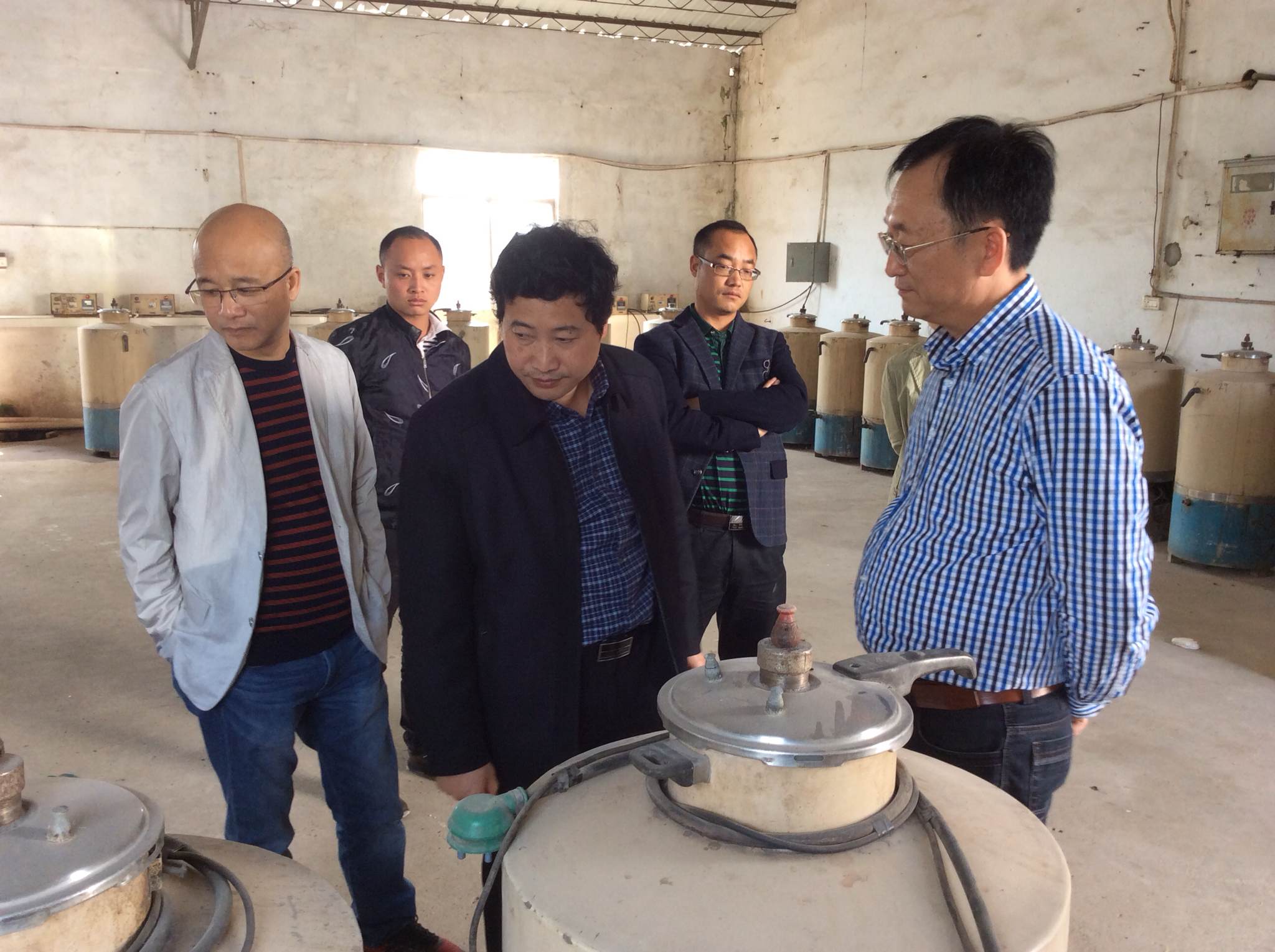 圖為 我司王榮輝王總帶林子??偛?、楊興明教授等一行人參觀生產(chǎn)基地