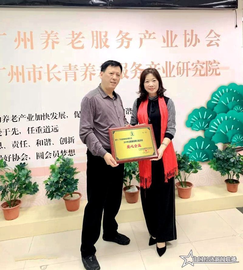 (慰問(wèn)的該養(yǎng)老公寓負(fù)責(zé)人劉寧與廣東冠初味科技有限公司副總經(jīng)理潘愛華合影留念)