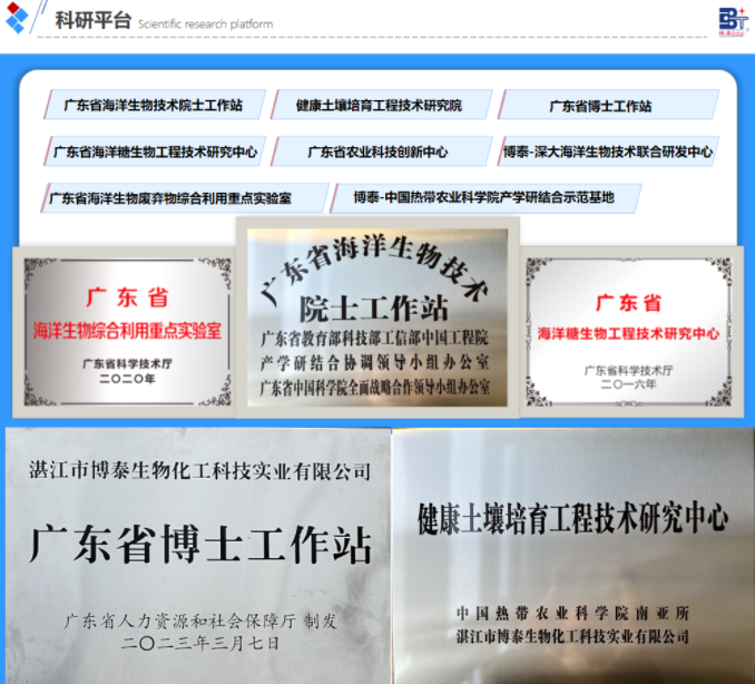 湛江市博泰生物化工科技實業(yè)有限公司(簡稱 “博泰生物”)成立于 2001 年,是一家以海洋生物資源綜合利用為核心,集創(chuàng)新產品研發(fā)、規(guī)?;a、全鏈條銷售及進出口貿易于一體的國家高新技術企業(yè)。二十余年來,公司聚焦土壤改良與修復、植物營養(yǎng)、大健康材料三大領域,憑借技術突破與產業(yè)深耕,先后獲評國家高新技術企業(yè)、廣東省專精特新中小企業(yè)、廣東省重點農業(yè)龍頭企業(yè)、廣東省創(chuàng)新型企業(yè),成為國內海洋生物精深加工領域的標桿企業(yè)。
