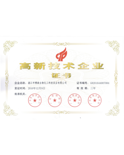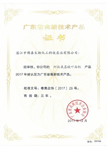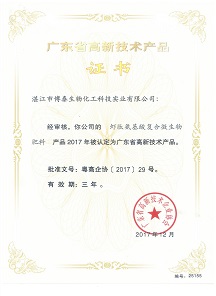 國(guó)家重點(diǎn)新產(chǎn)品證書(蝦肽氨基酸葉面肥)